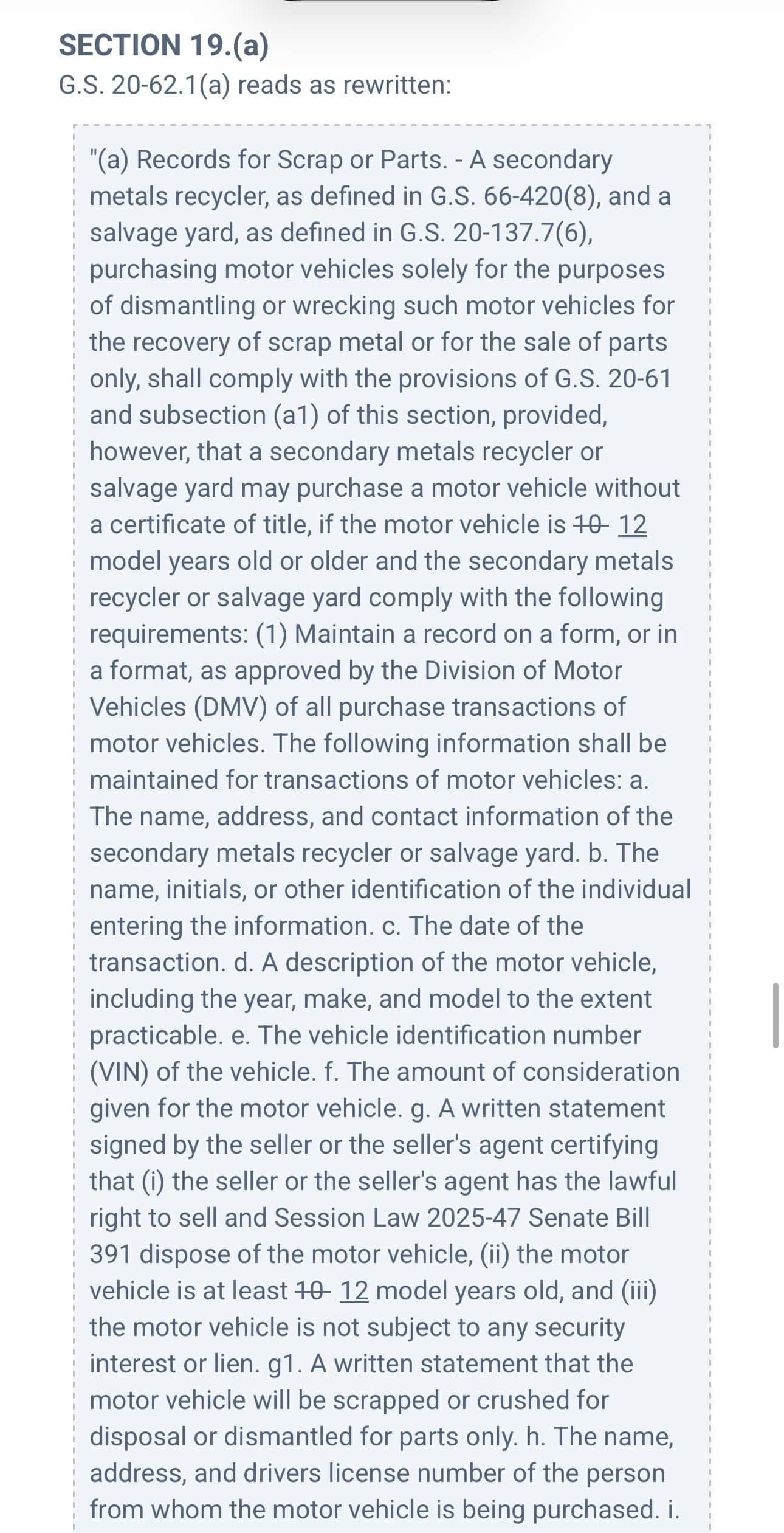 Effective October 1, 2025, we will no longer accept vehicles that are 12 model years old or newer without a title,